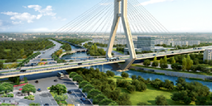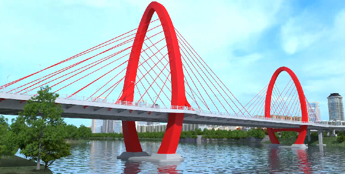 芝山橋南起福建省漳州市江濱路,跨越九龍江西,止于瑞京路—芝山南路交叉口,是福建省重點(diǎn)工程。主橋長300米,橋面寬36米,雙向6車道,采用雙塔雙索面斜拉橋。福船集團(tuán)承接其中鋼梁、鋼塔柱制作及安裝工程,工程總量約0.5萬噸。其中編制并實(shí)施的鋼主塔無支撐搭載方案充分體現(xiàn)了馬尾造船的技術(shù)實(shí)力。 -